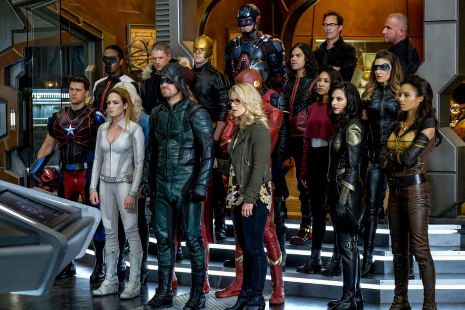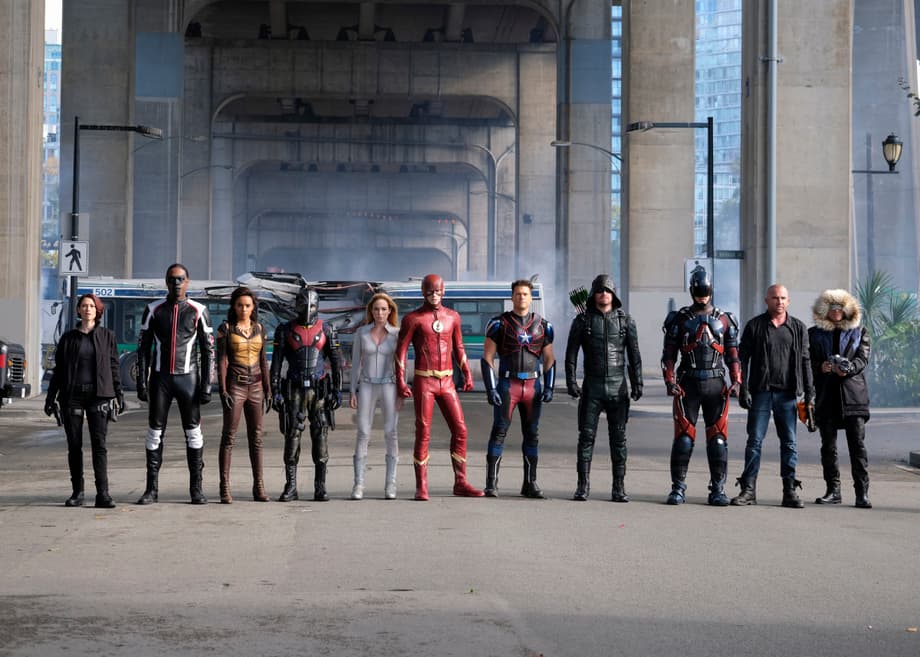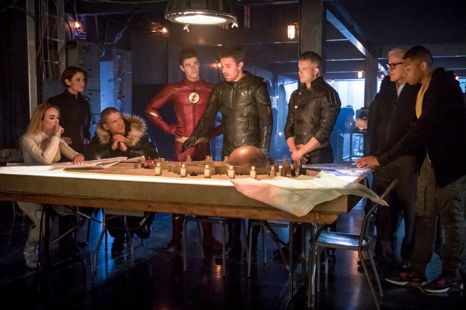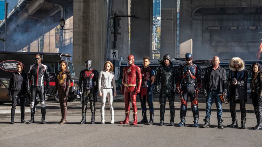 Now, with only ten days remaining, the CW has released ninety-seven new promotional stills from the four episodes, offering our first true look at the heroes from all across the DC TV Multiverse joining forces to face the greatest threat they've ever seen. There's plenty of individual shots of familiar and unfamiliar faces interacting as well as more than a few group shots, some of which could almost pass as homages to the Power Rangers.