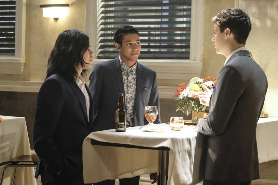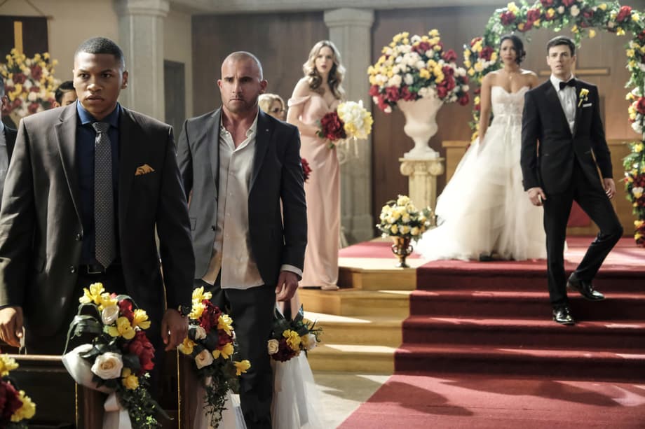 THE EPIC FOUR-WAY CROSSOVER WITH "ARROW," "SUPERGIRL," "THE FLASH" AND "DC'S LEGENDS OF TOMORROW" CONTINUES - Barry (Grant Gustin) and Iris's (Candice Patton) wedding brings the gang together, but things go awry when villains from Earth-X attack the ceremony. All of the superheroes band together with help from their super friends like Citizen Cold (guest star Wentworth Miller), The Ray (guest star Russell Tovey), Felicity Smoak (guest star Emily Bett Rickards), Iris West and Alex Danvers (guest star Chyler Leigh) to take on their most formidable villains yet. Earth's mightiest heroes - Green Arrow (guest star Stephen Amell), Supergirl (guest star Melissa Benoist), The Flash (Grant Gustin) and White Canary (guest star Caity Lotz) - lead their teams into battle to save the world. Dermott Downs directed the episode with story by Andrew Kreisberg & Marc Guggenheim and teleplay by Todd Helbing (#408). Original airdate 11/28/2017.