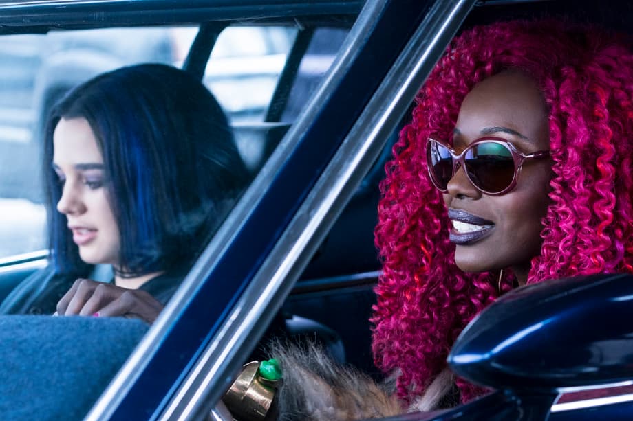 Future teammates, Raven (Teagan Croft) and Starfire (Anna Diop), make a quick pit stop to refuel after spending most of the day on the road with Robin (Brenton Thwaites) hot on their tails.