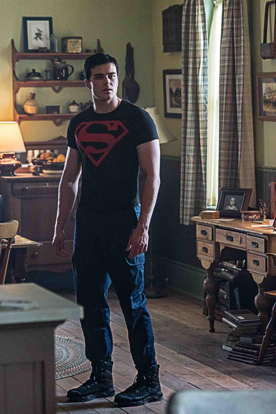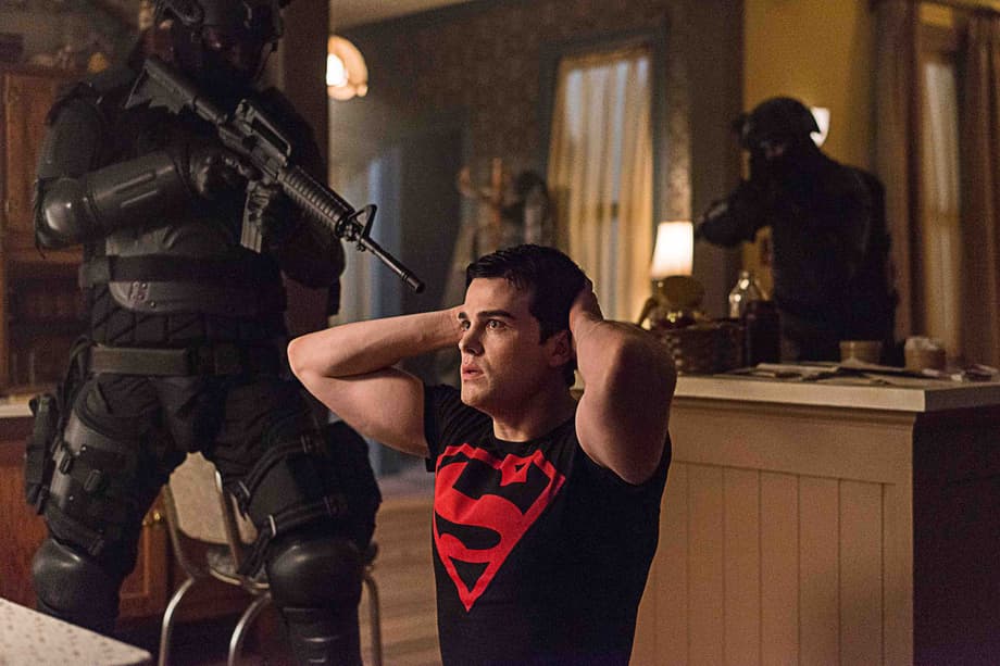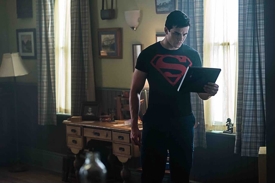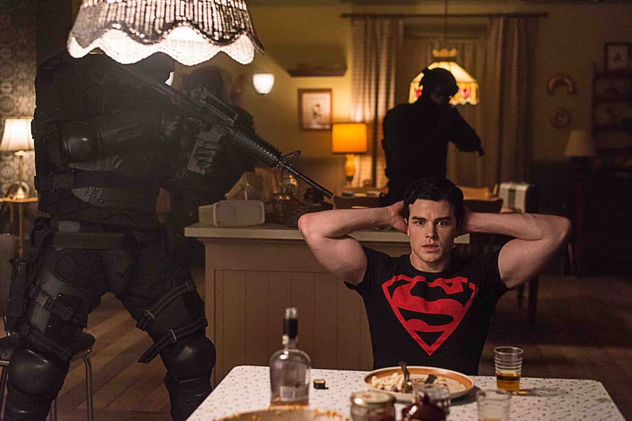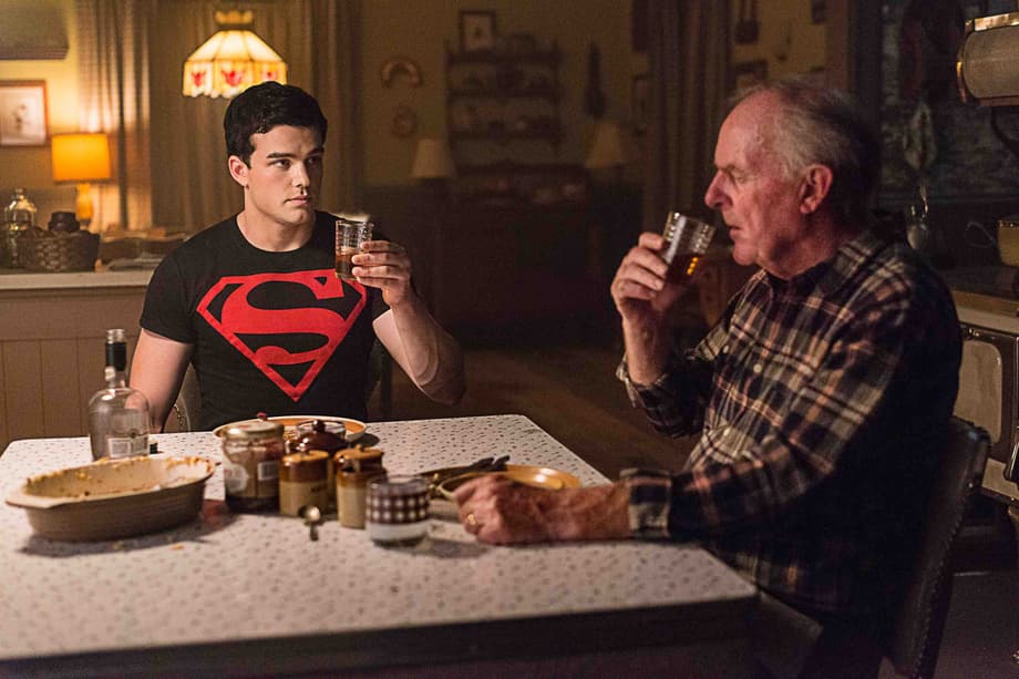 These photos showcase Conner at what appears to be the Kent farm, but with Lionel Luthor (Peter MacNeill) also at the dining table, it may be some sort of Cadmus facility masquerading as Superman's safe haven. Plus, we also get shots of Conner learning the truth about his origin from geneticist Eve Watson (Genevieve Angelson) and a first look at Krypto!