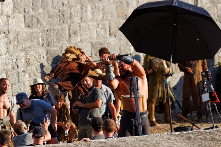 These snaps were apparently taken in and around shooting the infamous one-on-one battle between Clegane and Oberyn "The Red Viper" Martel from