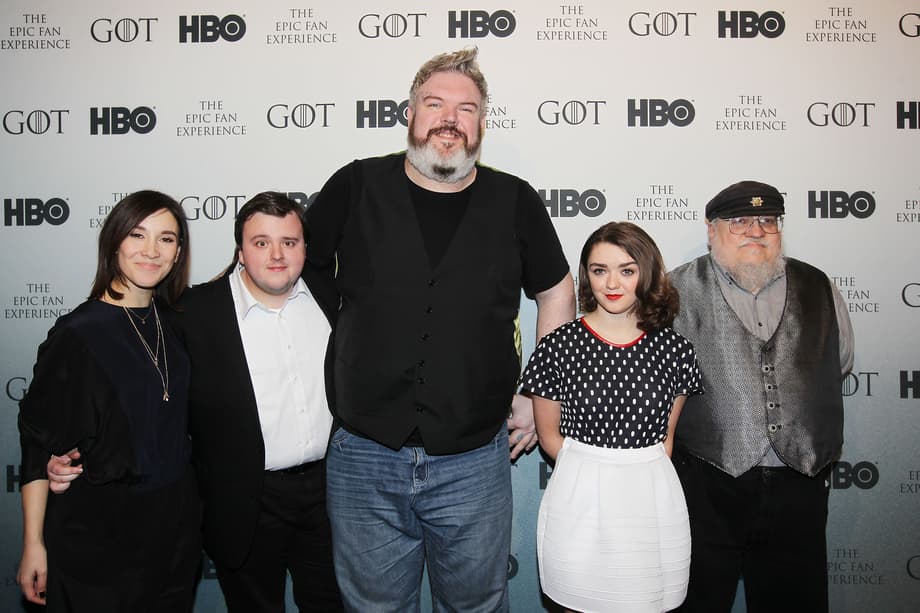 Sibel Kikilli (Shae), John Bradley (Samwell Tarly), Kristian Nairn (Hodor), Maisie Williams (Arya Stark) and Robert RR Martin