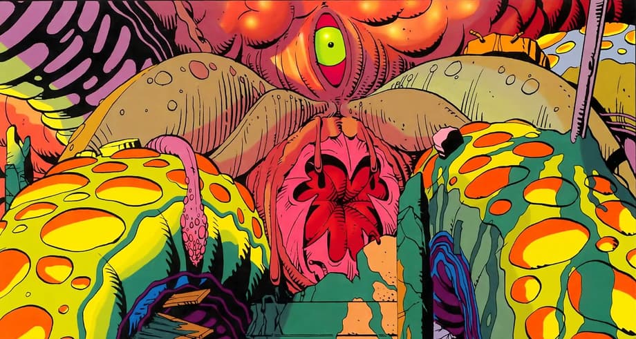 As the plot of Watchmen climaxes and readers discover that Ozymandias is the mastermind behind Comedian's death, Dr. Manhattan's desertion, and just about everything else from beginning to end, something weird happens: a giant alien squid monster appears in New York City, killing millions. The same happens in several key cities around the globe. The supposed alien attack, also perpetrated by Ozymandias, is meant to unite the people of Earth against the same enemy, thus creating the bonds of peace. More importantly, it seems to work.