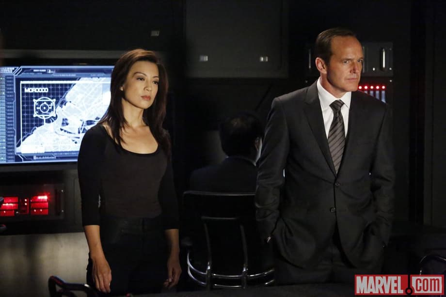 "Marvel's Agents of S.H.I.E.L.D." stars Clark Gregg as Agent Phil Coulson, Ming-Na Wen as Agent Melinda May, Brett Dalton as Grant Ward, Chloe Bennet as Skye, Iain De Caestecker as Agent Leo Fitz, Elizabeth Henstridge as Agent Jemma Simmons and Nick Blood as Lance Hunter.