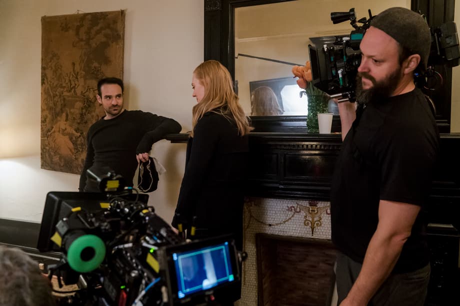 The first few photos showcase Matt Murdock (Charlie Cox) getting back into fighting shape before we catch a look at him back in the black suit. There's also a number of new photos of the supporting cast, which consists of Foggy Nelson (Elden Henson), Karen Page (Deborah Ann Woll), and Rahul Nadeem (Jay Ali). We also get to see the Kingpin (Vincent D'Onofrio), in his fancy white suit, and new shots of Bullseye (Wilson Bethel).