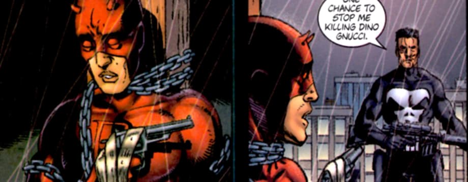 It appears Doctor Strange is not the only Marvel Cinematic Universe sneak peek featured in the latest issue of Entertainment Weekly as the magazine has also offered a first look at the upcoming second season of the Daredevil Netflix series. Thanks to Batarang Blues from Twitter, we have two low-resolution images that reveal not only a better look at Elektra (Elodie Yung), but also what appears to be the recreation of a great comic scene from Garth Ennis’ “Welcome Back, Frank” with the Man Without Fear (Charlie Cox) and Frank Castle, aka the Punisher (Jon Bernthal). Check it out!