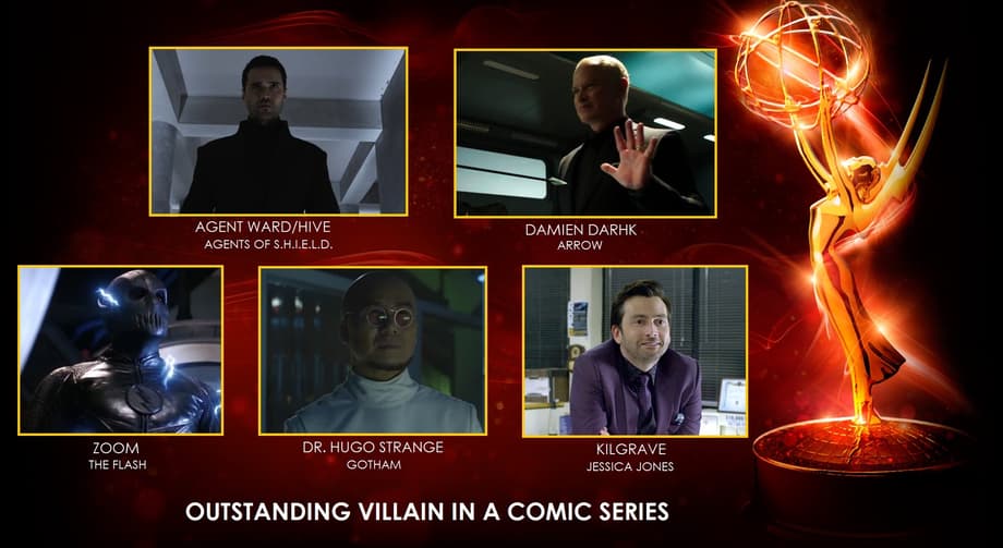 Been enjoying the Emmys on ABC this Sunday. Got to wondering what kind of a show it would look like if the awards were exclusive to comic book fare.  So I rolled up my sleeves and took to putting together a ballot of my own! 5 nominees across 10 categories, mainly coinciding with the Academy's major awards (sans the division between comedy and drama). Nominees are eligible from the fall of last year, though to the end of May this year- in other words, a full TV season. Walk with me, talk with me, and take a trip down this fancast for The Comic Book Emmys!