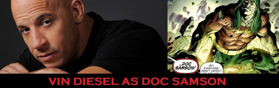 Vin Diesel has been teasing his involvement with Marvel's Inhumans film, and it's perfectly clear he is not playing Black Bolt.....he is Doc Samson. Imagine Vin Diesel with green hair, now your blown away right? Besides with all the talk of Hulk getting a bigger role it makes sense for them introduce his best pal Doc Samson but as Vin Diesel!