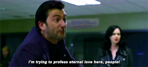 Entertainment Weekly, as part of their massive first look issue, has released the following photo, offering a non-spoilerly look at a troubled Jones with Kilgrave whispering something potentially horrific into her ear.