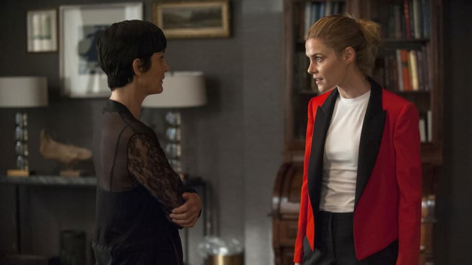 Trish (Rachael Taylor) looks to be having a fairly intense little chat with Jeri (Carrie-Anne Moss).