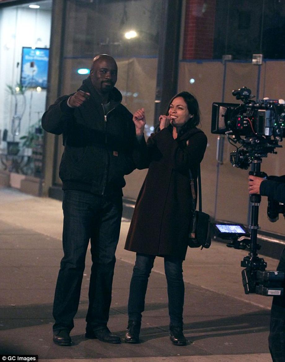 The latest batch of photos from the set of Marvel's third Netflix series, Luke Cage, has a first look at Rosario Dawson (Claire Temple), Simone Missick (Misty Knight), and Frank Whaley (Detective Scarfe), as well as Alfre Woodard as Mariah Dillard and Mike Colter as the Power Man.