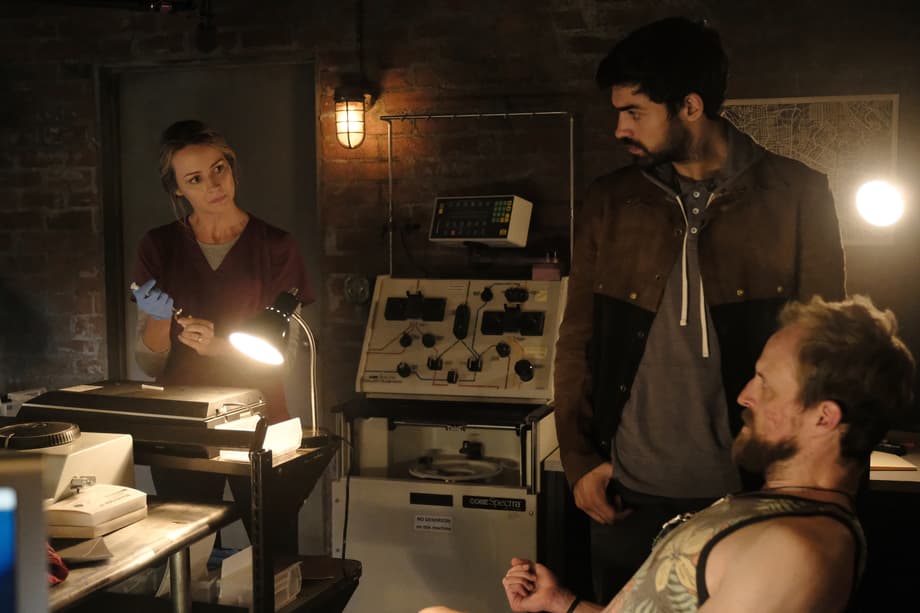 THE GIFTED: L-R: Amy Acker, guest star Adam David Thompson and Sean Teale in the "outMatched" episode of THE GIFTED airing Tuesday, Oct. 16 (8:00-9:00 PM ET/PT) on FOX. ©2018 Fox Broadcasting Co. Cr: Guy D'Alema/FOX.