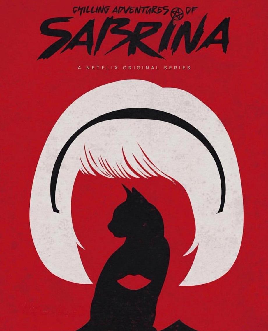 The image takes a minimalist approach, giving us a pretty cool artist's interpretation of Sabrina and her talking cat, Salem.