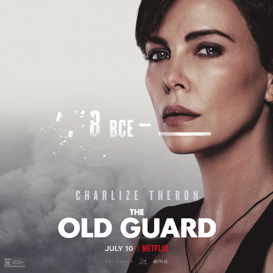 Following those new stills and clips, Netflix has also released a series of character and motion posters for The Old Guard, spotlighting each individual member of Academy Award-winner Charlize Theron's (Mad Max: Fury Road; F9) elite team of immortal beings while also offering new tidbits of information.