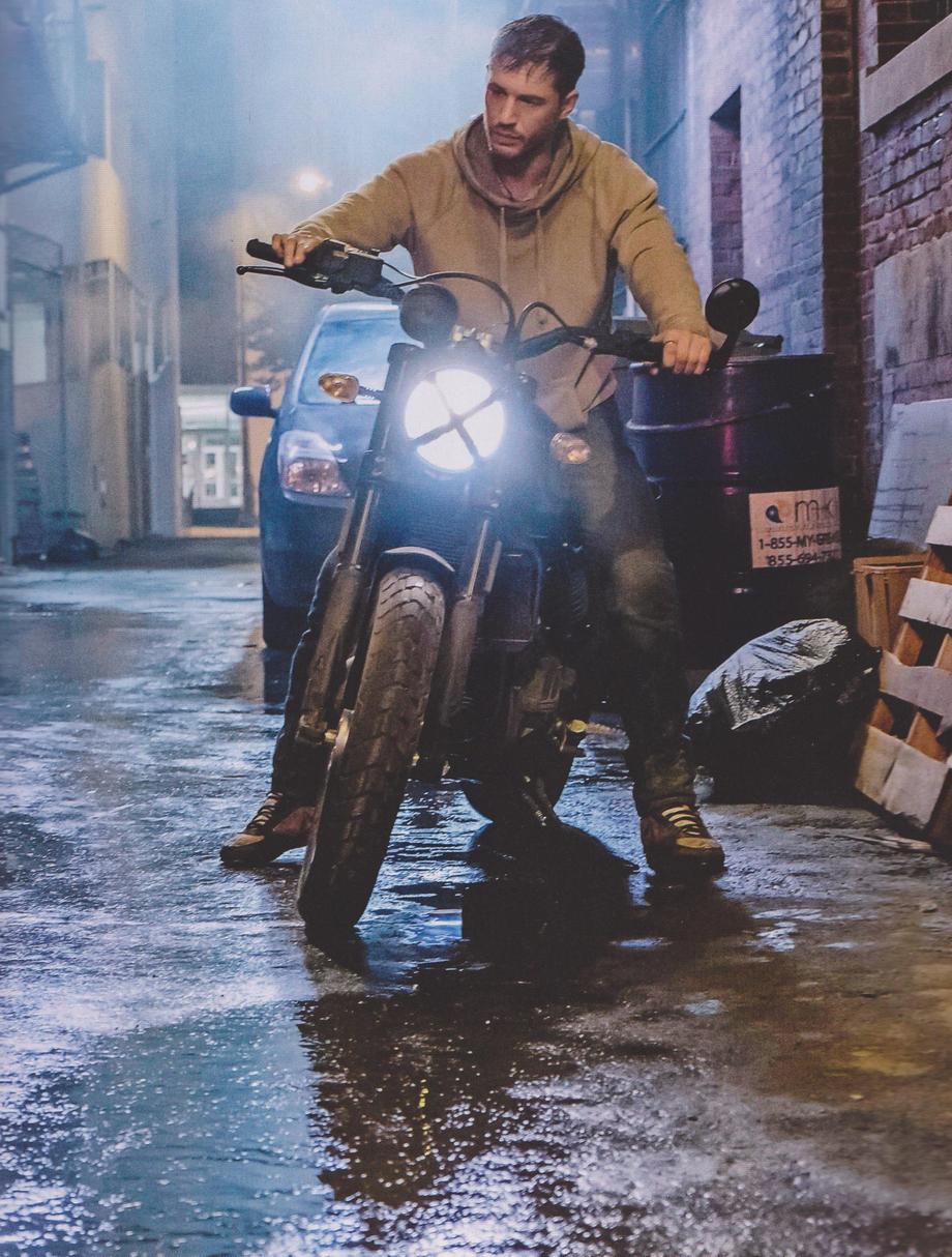 The latest issue of Empire Magazine features a new look at Tom Hardy as Eddie Brock and, well, it's not particularly exciting in all honesty! However, we know from the trailer that the anti-hero jumping on this motorbike leads to an action sequence where Venom unleashes the power of the symbiote to take out those pursuing him (presumably mercenaries who are working for the sinister Life Foundation).
