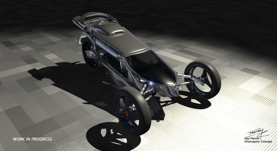 Spy Hunter never got off the ground, pre-production for the film was started. You can see below concept art of the G-6155 Interceptor, that was designed by conceptual illustrator,