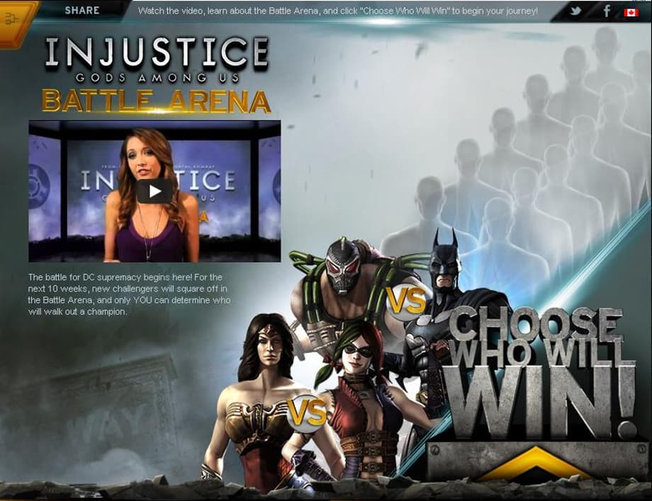 NetherRealm Studios have officially launched the Injustice: Gods Among Us Battle Arena featuring weekly battles where you can cast your vote on who wins each particular match and get entered to win sweet prizes! One could only hope that our picks lead to new gameplay footage and character reveals. The site also features interviews with celebrities casting their picks. Below, you can see Kevin Smith, Jason Mewes, Tara Strong, Wayne Brady & Kevin Conroy pick their winners in Bane vs Batman and Wonder Woman vs Harley Quinn. Simply click on the big image below to be headed to the site, and check out the celebrity interviews below.