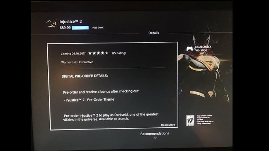 We didn't have to wait until Tuesday for an Injustice 2 reveal after all. With new details of the DC Universe fighting game scheduled for announcement just next week, the Playstation Store prematurely posted the Injustice 2 profile page with details that clearly weren't yet meant for public eyes. The game was hastily removed from the Playstation Network, but by then the damage had been done. The game's profile has been screencapped, bringing forth the revelation that the classic Justice League nemesis Darkseid will be featured as a playable character exclusively for those who pre-order the game. Already having been featured in the mobile incarnation of Injustice: Gods Among Us, Darkseid has been a fan favourite choice to be the final boss of Injustice 2 due to his intellect and sheer physical power. Darkseid's appearance as a pre-order bonus doesn't come entirely unprecedented, as the character Goro was featured as a pre-order exclusive for those who purchased Mortal Kombat X, a game from the same developers as the Injustice series.