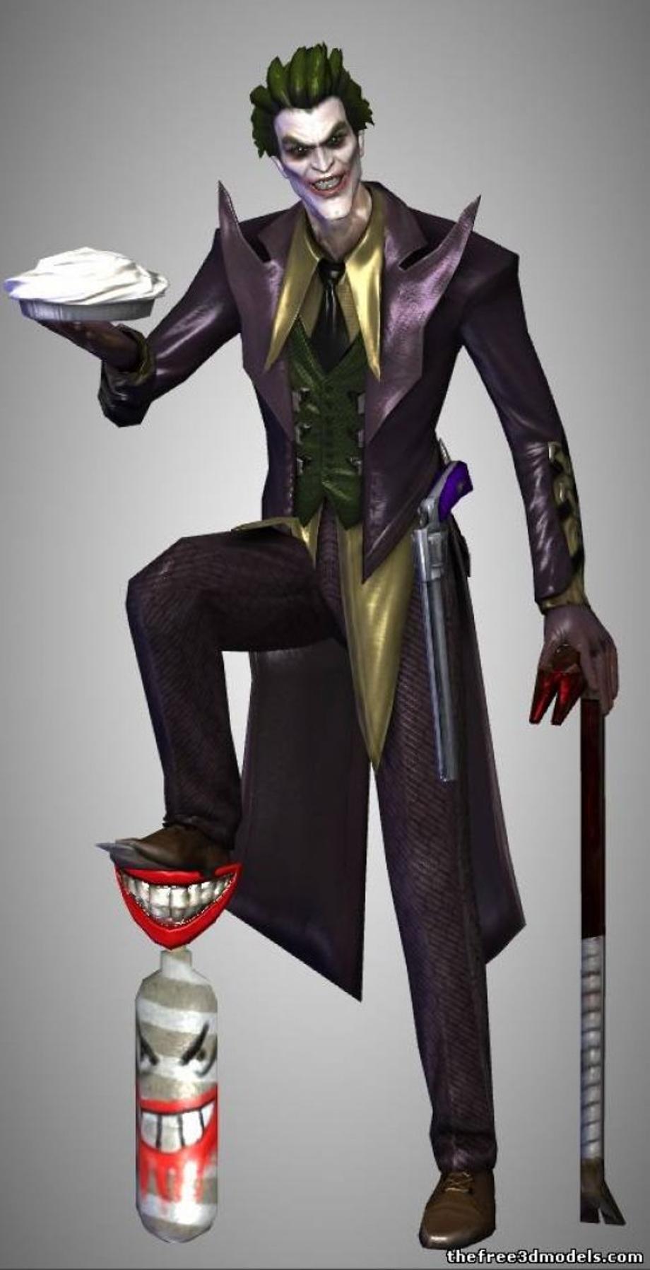 Joker has weapons and fighting skills. At first we have a knife. Then a three-foot pistol. The point is, like in all video games these days the further along you get, the cooler and more heinous the Joker and his tactics get. I had an idea for special points when you pull off a practical joke kill.