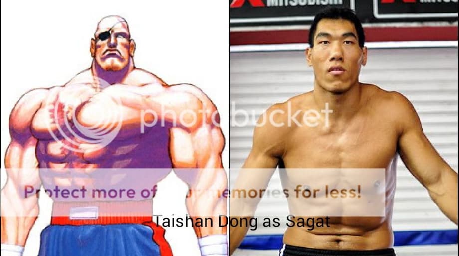 Dong is a 6 ft 11 inches tall Chinese boxer. Since Sagat is Thai and tall, i think Dong is the best candidate.