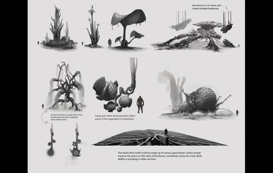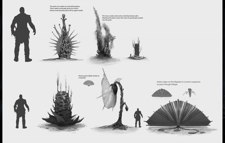 The surrounding environment could interact with the character (if Kratos brushes-up against the vines, they expell visible spores).