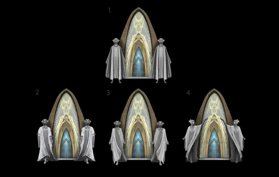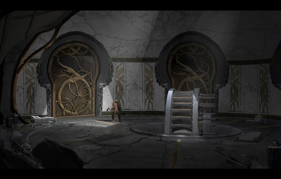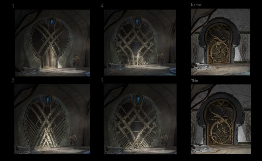 Kratos will visit Alfheim, “Land Of The Fairies”, one of the Nine Worlds and home of the Light Elves (concepts show the Wall and the Temple Door);