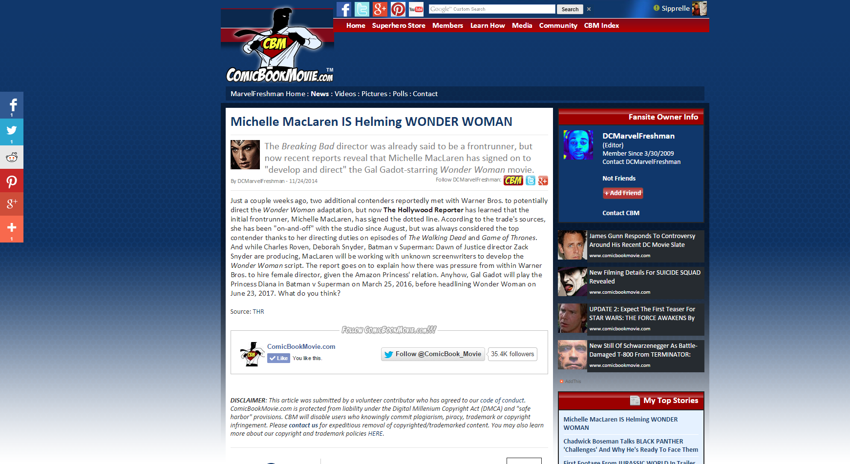 In addition to directing the DC Comics adaptation, MacLaren will also be working closely with unknown screenwriters to develop the script for the Amazon Princess. And Charles Roven, Deborah Snyder, and Batman v Superman: Dawn of Justice director Zack Snyder are on board as producers. THR also reckons that there was some pressure within Warner Bros. to hire a female director for the project, despite very few females having successfully tackled a project of this scale. Fortunately, things seemed to have worked out with Michelle MacLaren, who has become a fan-favorite ever since she was revealed to be in contention. Anyhow, Gal Gadot is set the star as Princess Diana in Batman v Superman on March 25, 2016, and will then headline Wonder Woman on June 23, 2017.