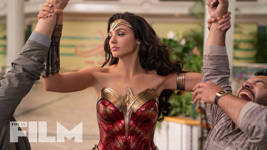 Total Film, we have a new image from the DC Comics adaptation. As you can see, Gal Gadot's Diana Prince is shown man-handling a couple of goons who have made the mistake of getting on her bad side (in a classic 80-set Mall, no less).