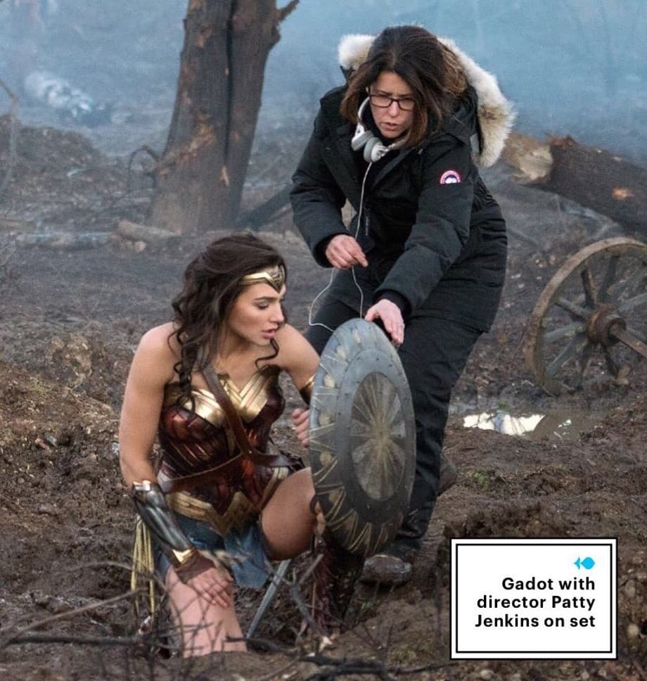 As you can see from the stills below, Diana's Wonder Woman outfit looks quite different from when she made her debut in Zack Snyder's Batman v Superman. That's probably because this will be the first time Diana goes out into the world as Wonder Woman, and she hasn't had the chance to break it in with a couple of battles. Another one of the images featured in the issue even offers up a behind-the-scenes look at director Patty Jenkins getting Gal Gadot ready for what looks to be an epic battle.