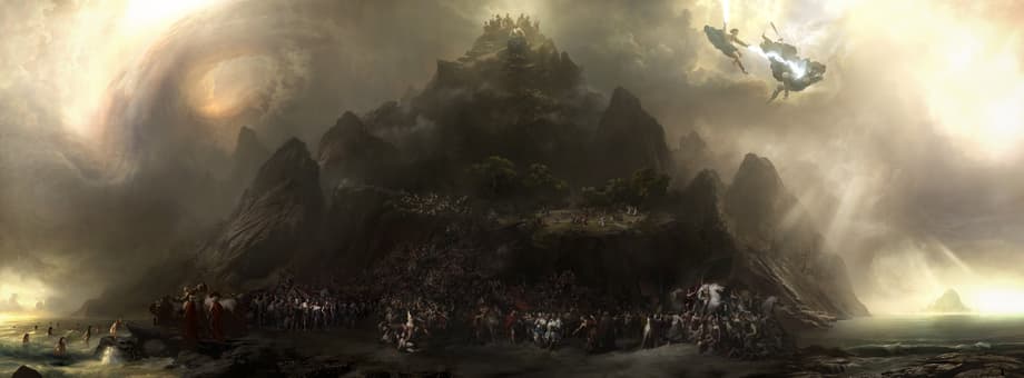 Now, artist Houston Sharp, one of the many talented artists who worked on creating those magnificent paintings, has decided to share all the artwork featured in the scene, as well as those that didn't make the cut. The paintings showcase Zeus with the other gods on Mt. Olympus, the creation of the Amazons, humanity's betrayal, Ares killing the other gods, and the creation of Themyscira.