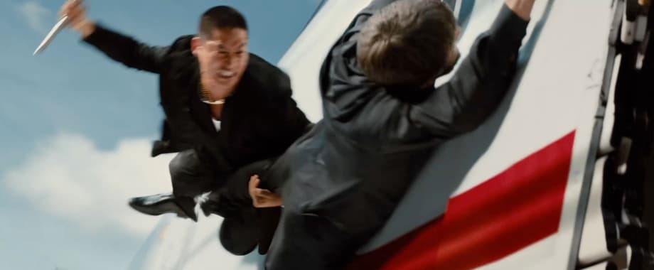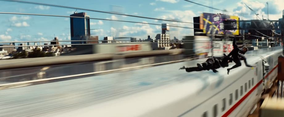 The international trailer makes the train fight look less silly, he's not flying but if the train is going over 175 MPH it sure will look like it