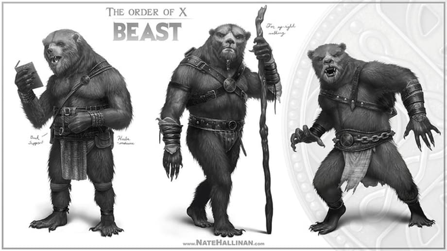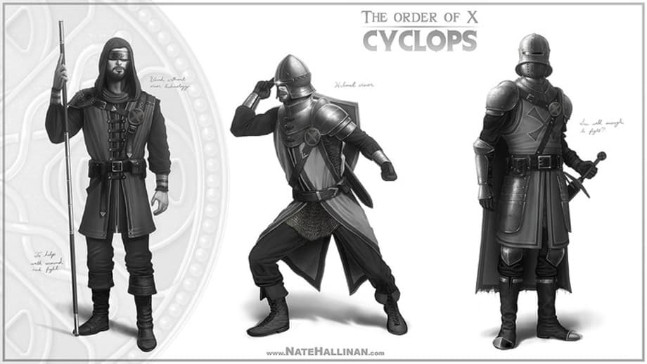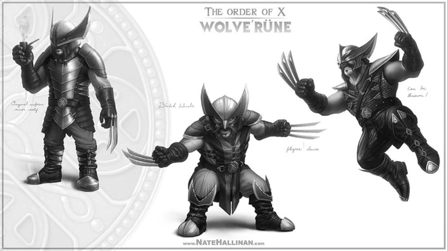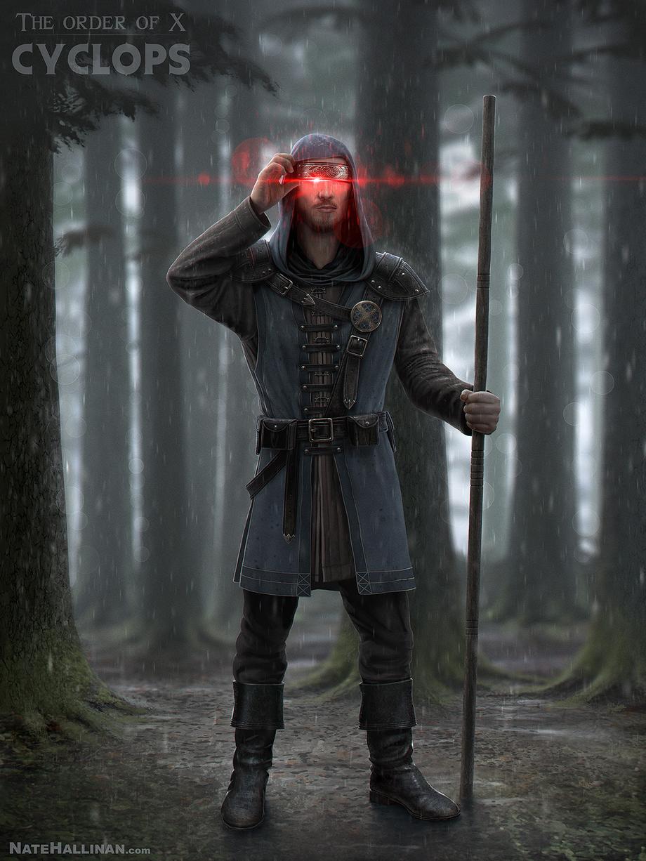 This is some fantastic artwork! Nate Hallinan's "The Order of X" series features members of the X-Men as though they existed in a medieval/fantasy universe, like Game Of Thrones and The Hobbit. In this alternate reality: Nightcrawler is an Elf, Beast is influenced by Beorn from The Hobbit, Colossus is a blacksmith, Cyclops is a Knight, Storm is a witch, Charles Xavier is a Lord and Wolverine is a dwarf. Besides illustrating the series, he also provides lavish backstories for them, which you can read below.