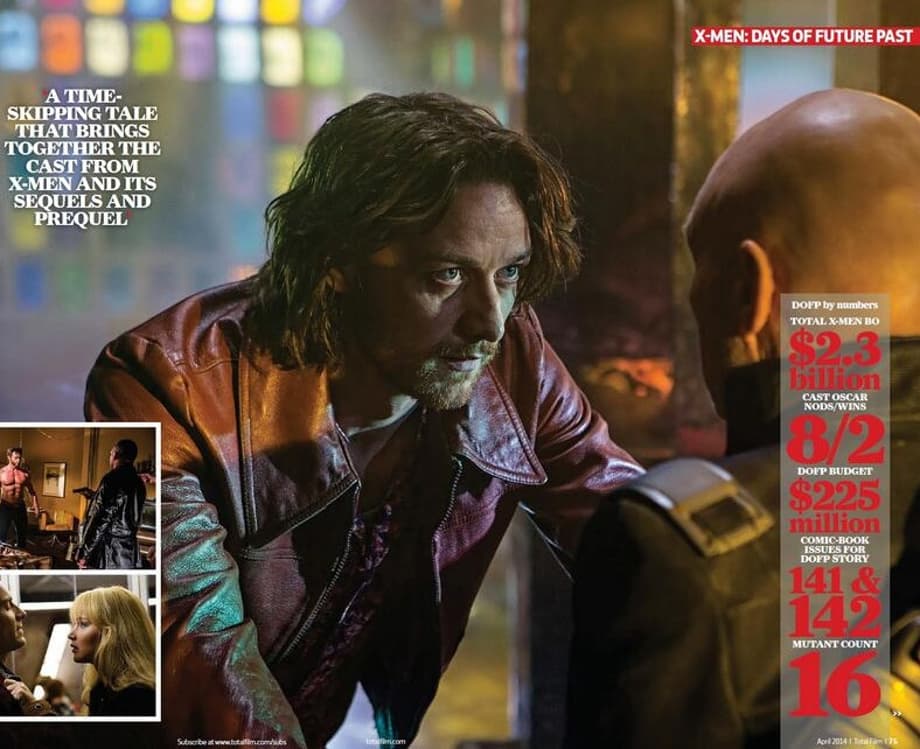 The latest issue of Total Film magazine has a nice batch of new X-Men: Days of Future Past images, with Hugh Jackman, James McAvoy, Ian McKellen, and Jennifer Lawrence. Check it out.