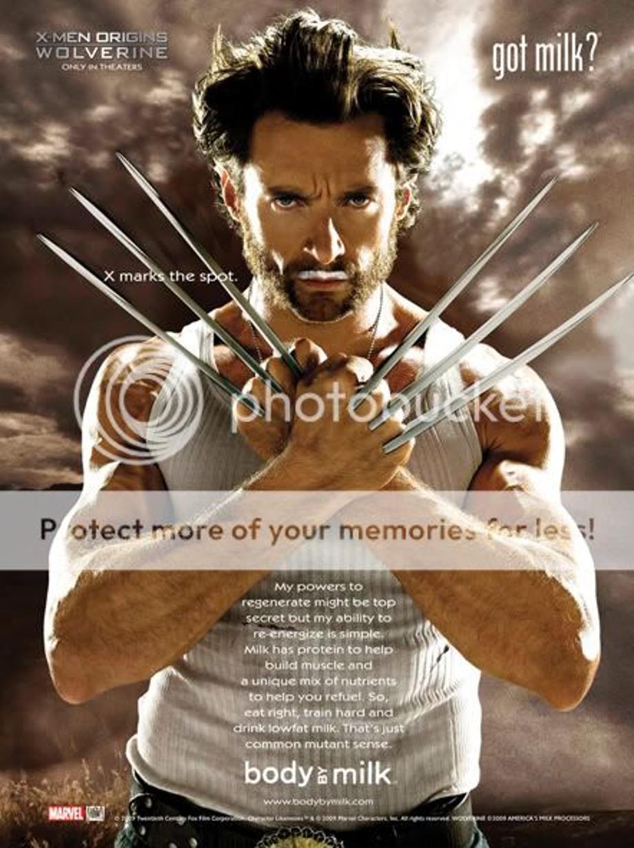 Shameless film promotion. Wolverine drinks beer, beer and more beer. Sure he has strong bones, but that's only because of his adamantium skeleton. I got douche chills when I saw this.