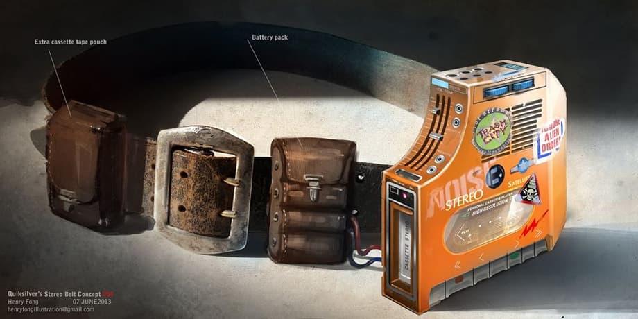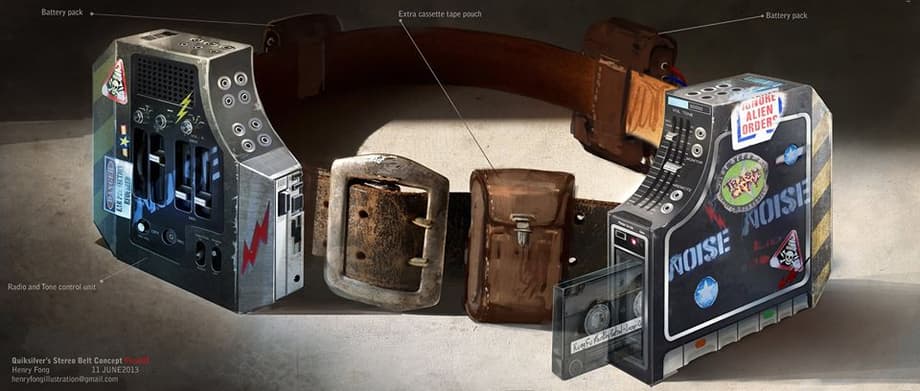 When director Bryan Singer ("The Usual Suspects") announced that X-Men: Days of Future Past would include 'Quicksilver' and that Evan Peters ("Kick-Ass") would play the role many people, such as myself, were skeptical. The timing of the announcement seemed especially odd since we already knew Joss Whedon's Avengers: Age of Ultron had decided to use the speedy-mutant as well. But all doubt surrounding Singer's intentions were tossed out the window when audiences were blown away by the film's Pentagon scene. 'Quicksilver' stole the show as he zipped along the walls of the Pentagon's kitchen with a gleeful smile as he protected his new allies: Wolverine (Hugh Jackman), Magneto (Michael Fassbender) and Charles Xavier (James McAvoy). Below, are designs for the character's customized stereo belt.
