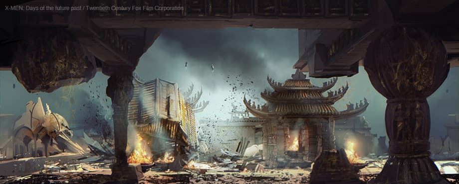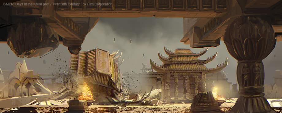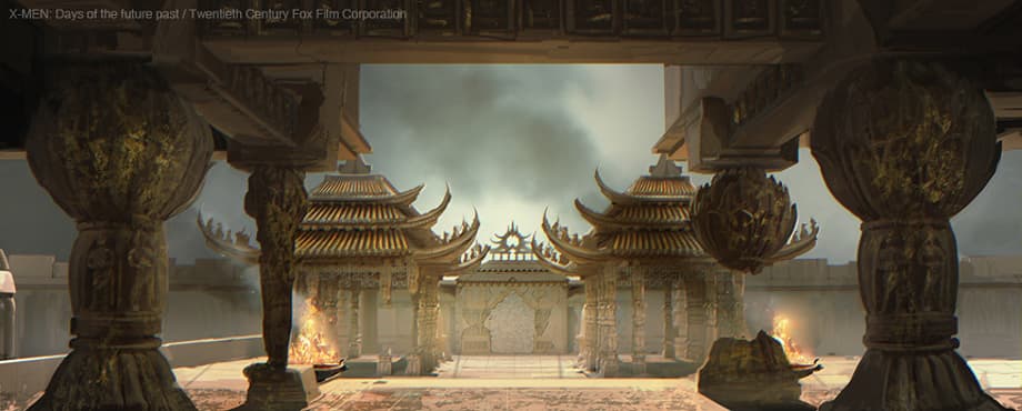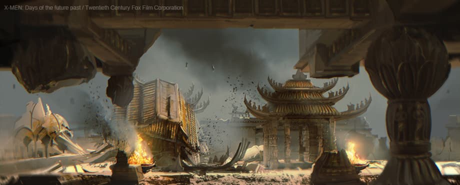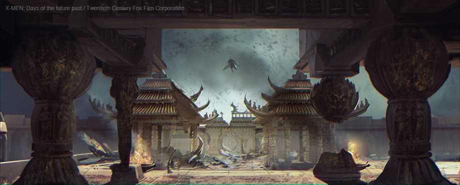 Chinese monastery/temple set we see the mutants of the future using as a hideout. And finally, concept art with the flying vehicles that transport the